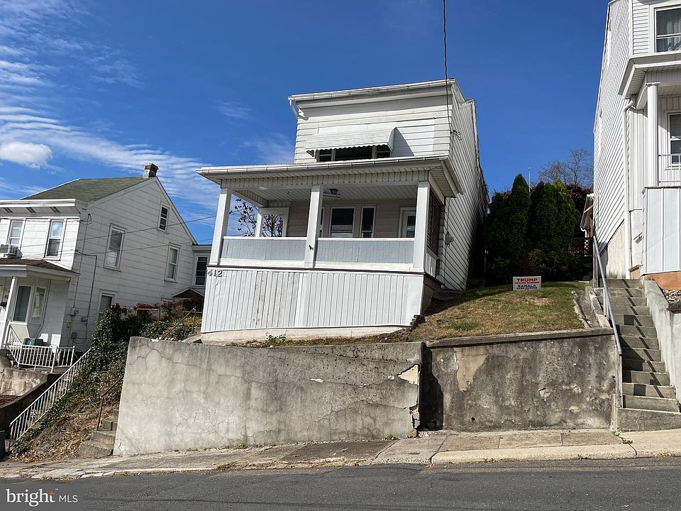 Pottsville Single home with 2 CAR GARAGE!  Gorgeous views of the city from the porch & many of the rooms in the home!  3 bedrooms with the attic being the possible 4th bedroom (has heat).  Main living area is nice and open.  Kitchen has a peninsula for extra countertops & seating. Plus utilize the rest of the room for a dining room/laundry room. NEW Flooring added to Kitchen/Dining area Jan 2024. Massive living room has plenty of room for office space, playroom, family room-- whatever you need it to be!  3 Bedrooms on 2nd floor have closets in each room so there are plenty of storage options. 2 car garage gives you the ability to park in the back without having to go up all the steps to get to the house.  Outside has a nice yard & garage even has an additional room for all your lawn care, gardening items or bike storage!  Come see what all this has to offer!