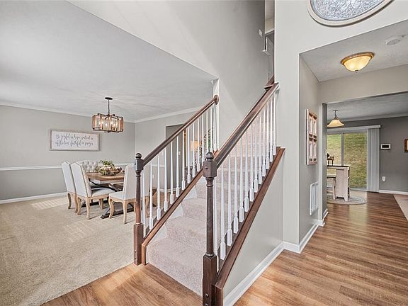 This is the home you've been waiting for! Welcome home to 412 White Pine Lane located in the desirable neighborhood of Whispering Pines Estates in Economy Borough. This beautiful and spacious 4 bedroom colonial style gem is nestled on a .47 acre lot. This charming home is loaded with features & showcases a spacious open kitchen/living room layout, breakfast area, stainless steel appliances, newer solid surface kitchen countertops, newer sink & backsplash, family/office or bonus room, formal dining room, gas fireplace with built-in shelving, crown molding, recessed lighting, & laundry room all on the main floor. The upper level boasts a large master bedroom, roomy en suite bath with double sinks, soaking tub, shower, and dual closets. The features continue to the lower level which include a finished basement and large 2 car garage. If you are looking for a meticulously maintained/ move-in ready home minutes from Cranberry Twp, shopping, parks, and restaurants, then this is a must see!