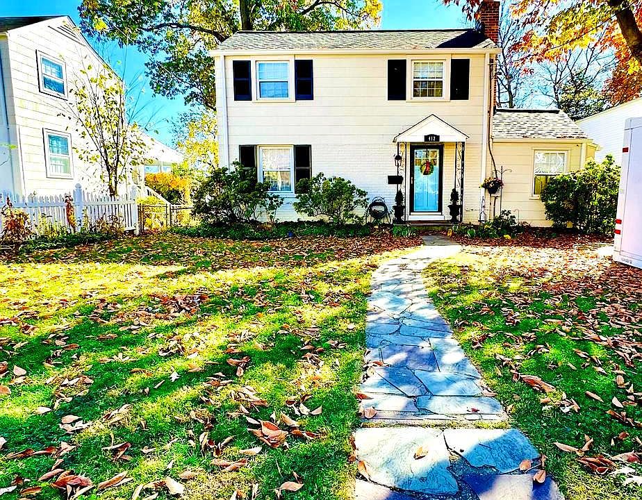 Welcome to 412 Whitestone Road, a classic colonial with an updated interior in the charming, highly sought-after Woodmoor neighborhood. Remodeled in 2019, with a new roof and gutters in 2023, this turnkey home blends modern elegance with comfortable living. The ground floor features a circular layout, creating a nice flow throughout the house. Fresh hardwood floors and ample windows allow for excellent lighting throughout the home's first floor. A central living/dining area greets you upon entry, with a brick fireplace, built-in shelf, and front closet. Right off the front door, behind the brick fireplace, is a wonderfully sunlit room, perfect for a home office, playroom, or den. A vibrant, 2019 updated wrap-around kitchen with Silestone countertops, tile backsplash, fresh cabinetry, and 2019 stainless steel appliances connects the dining area to a sunroom in the back of the house. This beautiful space, perfect for formal dining or another living area has wall-to-wall windows and provides a beautiful view of -- and entry point to -- the backyard. The upper level features a large primary bedroom and a secondary bedroom with deep closets, and a 2019 remodeled full bathroom with a built-in storage cabinet. The unfinished lower level is freshly painted and has plenty of open space perfect for storage, a home gym, or additional living space. It houses the washer/dryer system, furnace, hot water heater, and A/C unit, all new as of 2019. The sizable backyard is perfect for family pets, children, and gardeners alike, thanks to a level lot, a four-foot fence with two gates for front yard access, and a beautiful 2021 garden shed with ample storage space. A courtyard garden patio surrounded by azalea bushes and a picturesque holly tree is just steps away from the back door, perfect for unwinding and entertaining. The home's front yard has beautifully landscaped garden beds with a driveway for off-street parking on the right side. Conveniently located in the heart of 4- Corners, Woodmoor is a sought after neighborhood known for its sense of community. There are music festivals, a 4th of July parade, Oktoberfest and so much more. Easy access to public transportation, 495, Washington D. C. , Virginia and Baltimore.