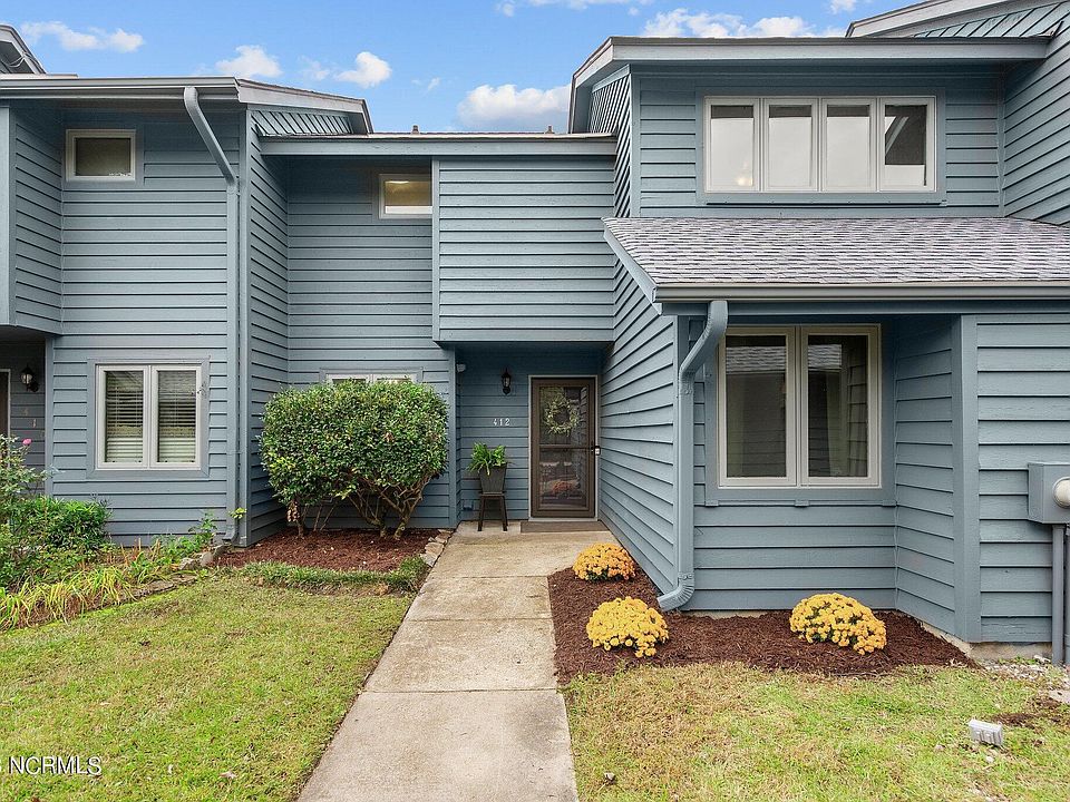Welcome home to this charming townhome with so many improvements! Updates include fresh paint including ceiling, doors & trim, replacement of bathroom sinks & faucets, new air vents, door knobs & hinges, electrical outlets & plates, laminate flooring & shoe molding throughout. When you walk in on the main level, you'll enter the foyer (new bead-board) with one bathroom (new vanity, countertop, sink, faucet, medicine cabinet insert, & light fixture) & one bedroom (new flooring, transitions, & shoe molding) to your right. The living room, kitchen, dining area & laundry can also be found on the main level. The living room has tall ceilings with tons of natural light, a fireplace & accent wall. Step out on the patio to relax featuring new screens & trim. In the kitchen, that's open to the dining area (new chandelier & stained wood bar) & living room, you'll find a new refrigerator, dishwasher, faucet, cup rinse & disposal plus refinished & sealed counter tops, & a natural stone backsplash. Off of the kitchen is a laundry closet with new tile, brackets & shelving. As you go up the stairs, you'll find two bedrooms. One is currently being used as an office & has passthrough windows open to the landing. The garage features built-in shelves for storage. The HVAC capacitor & the motherboard have been replaced & it was inspected & cleaned (see update list). HVAC is on a 2x/year maintenance schedule. The exterior was recently painted & all cedar siding was inspected & repaired. Everything was heavily caulked, sealed & spot primed & painted (2023). The chimney exteriors were fully recovered & repaired in early 2020. Roof 2020. HOA dues covers exterior maintenance of buildings, master insurance, yard maintenance, pest control & more! Conveniently located less than a half a mile from Lowes Foods grocery store & restaurants. 14.5 miles from Mayfaire in Wilmington, approximately 15-20 minutes to Surf City & Topsail Beach.