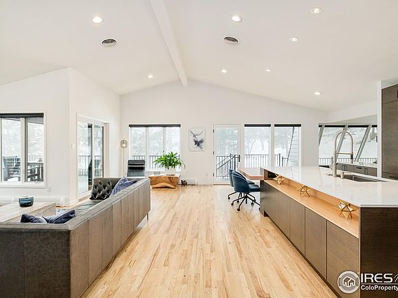 Soak in breathtaking mountain views from this Pine Brook Hills home completely remodeled by Melton Construction. A sprawling, open-concept layout unfolds with newer double-paned windows throughout, drawing the outdoors in. Beautiful wood flooring flows underfoot into a large living area grounded by a sleek fireplace. Lofty vaulted ceilings continue into an open kitchen flaunting maple cabinetry and a center island. Vast windows line the dining area, offering plenty of room for entertaining. Escape to a main-level primary suite boasting a walk-in closet and a bath with a Kohler smart shower. A private main-level study offers a quiet home workspace. Downstairs, a walkout lower level hosts a second living area and a laundry room. Indulge in outdoor relaxation on spacious Trex decks overlooking a gently sloping yard complete with an infrared sauna and a hot tub. Owned 10 KW PV solar system offers reduced utility costs. This quiet neighborhood provides seamless access to nature trails, Mt. Sanitas, Lions Lair, many more. Here's an opportunity to own a Bespoke Mountain Property. Perfectly maintained inside and out. New Heat Pump Installed//New Septic Tank Being Installed-Permits Pending//Radon Mitigation Installed//Electrical Inspected-Good//Roof Inspected-All Good//New Plumbing Pipes Installed//Plumbing inspected-all good. Fire Hydrant within 500' of home.