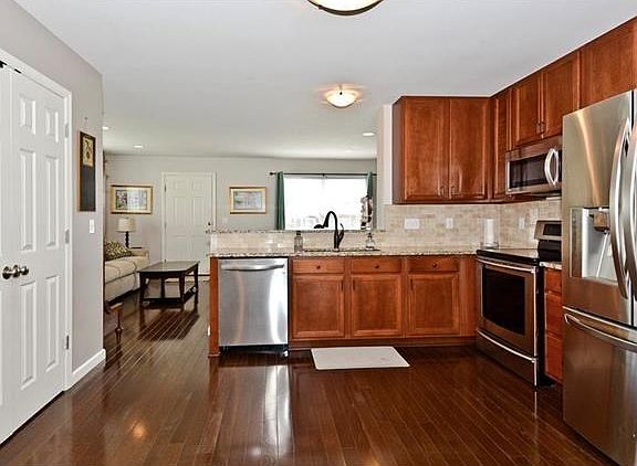 LEASE ONLY! Welcome home to this 2-Story end unit townhome. The exterior offers vinyl siding, enclosed soffits/fascia, 1 car garage, covered front porch, patio and a deck that is perfect for entertaining. The interior offers an open floor plan with newer wood flooring and upgraded light fixtures and ceiling fans. The kitchen boasts granite countertops with an overhang, stone backsplash, pantry, stainless appliances, hands free upgraded kitchen faucet w/ deep sink, built in blinds in the slider & beautiful cabinets with bronze pulls. This home offers 3 full baths, 6 panel doors with satin nickel handles, ceramic tile flooring, vaulted master bedroom, 2nd floor laundry, 2 inch faux wood blinds, walk-in closets and a partial finished walk-out lower level with a 4th bedroom and plenty of storage.