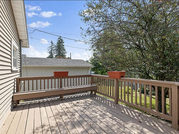 This charming 2-bedroom residence sits on a well-manicured lot and offers a blend of comfort and convenience. The property features a detached garage and a large, paved driveway, making parking easy and accessible. The inviting enclosed front porch, complete with screened windows, is perfect for enjoying your morning coffee or evening relaxation in all seasons. Step inside to find a spacious living room that can double as a dining area, providing versatility for your lifestyle needs. The large kitchen is a true highlight, offering ample space for a sizable kitchen table and a generous pantry for all your storage needs. From the kitchen, you can step out onto the back deck and take in the serene view of your private backyard. There are newer windows and blinds throughout offering a generous amount of natural light. This cozy home boasts two bedrooms, including a large primary bedroom. The 3/4 bathroom has been updated with a newer shower and offers convenient main floor laundry hookups. Recent upgrades such as a newly installed water heater in December and an HVAC system that is cleaned and inspected semi-annually provide peace of mind. Additional storage opportunities abound in the full basement, making this home both practical and charming.