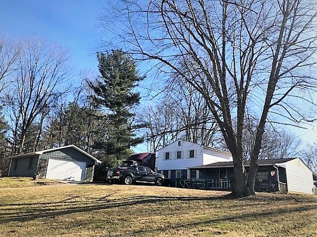 Beautiful rural setting about 15 minutes from Bloomington and a few minutes to the lake. Comfortable 3 (4) bedroom 2 1/2 bath home with separate in-law suite with kitchen, living space, and full bathroom; this space could be used for Airbnb or separate living quarters. There is a bedroom on the main floor and one upstairs with 2nd space that could be used as a bedroom, playroom, study, or den. There is also a half bath upstairs. Covered front and back porches. The back porch overlooks the acreage and is perfect for playtime, football games, and hanging out. The platform is the home for your new 10x20 greenhouse (assembly required). The new brown shed is 12x20. New heat pump and a/c installed in 2017. This house is all electric and would be ideal for solar panels.