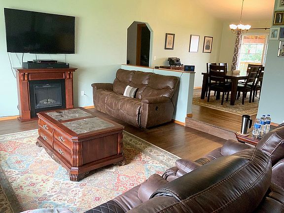 Call: (406) 369-2625 Pride of Ownership off County paved road with easy commute to Missoula or Stevensville Town. Sunken living room and vaulted ceilings offer an open concept floor plan for entertaining. Formal dining room provides a sliding glass door onto the large covered back deck perfect for BBQs or just relaxing. Master bedroom suite is located on the south side of home separating itself from the additional 2 bedrooms. Master bedroom offers 2 closets, large living space and a private full bath. Forced air propane heat throughout home as well as a new wood burning stove. Crawlspace has spray insulation on walls and black vapor barrier. Attached oversized 2 car garage has a door leading to the back yard concrete patio and another entrance into the home through the laundry room. Separate insulated and heated work shop with concrete slab floor and roll up door make it a great place to do hobbies or store your yard equipment. The barn is already set up for animals and a frost fee water spigot nearby. Interior painting in most rooms completed 2015. This adorable 3 bedroom/2 bathroom split living rancher has gorgeous views of the Bitterroot Mountains. Boasting 2.5 acres and over 1689 Sq. Ft., this home offers several higher end upgrades including granite counters, vinyl flooring, new window coverings, new stainless-steel appliances, and a new wood burning stove. There is a fabulous walk-out covered deck/porch that leads to the privacy-fenced and gorgeously landscaped backyard that includes cherry, plum, and apple trees, to include raised garden beds with strawberries, raspberries, and blackberries. An in-ground sprinkler system and drip irrigation to all trees was installed in 2017. Brand new roofs, on all buildings, and fresh trim painting is currently being worked and will be completed before the end of September 2020. The home has an attached 2 car insulated garage with a large storage pantry and chest freezer. The property also has 2 outbuildings: a 20x40 insulated and heated (electric and/or wood burning stove) shop that the owners have turned into a complete home gym. There are also several storage rooms in the shop and a closed barn with metal roof. The property is fenced and cross-fenced and ready for your animals.