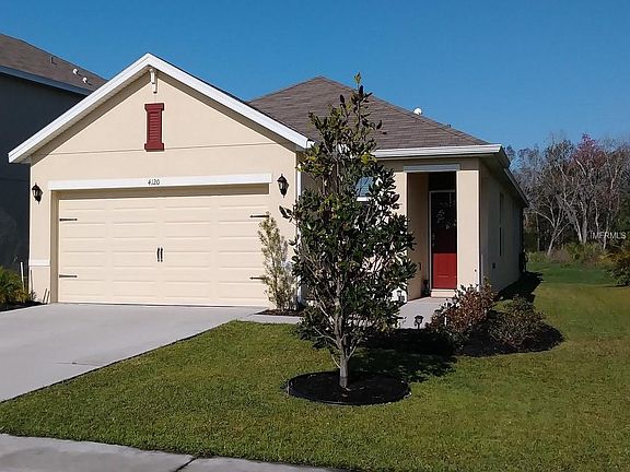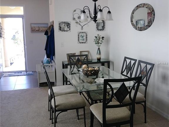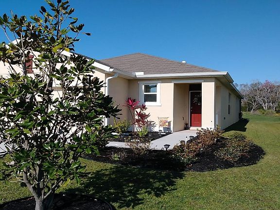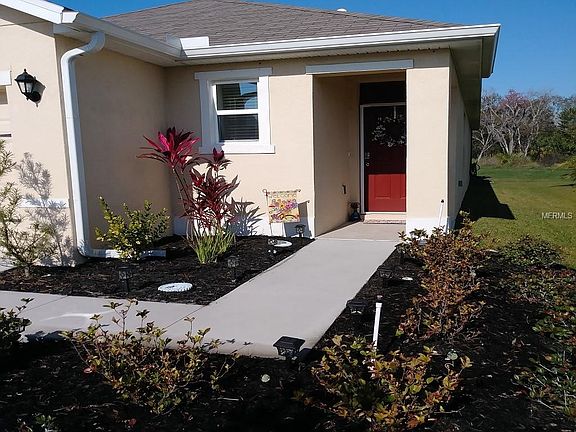 HOME LIKE NEW 3 bed 2 bath with a large kitchen an breakfast bar that opens up to the formal living room. Owner's use as vacation home just for a few months a year. Master has large window over looking the serene and clean pond for outstanding sunsets. Spacious walk-in closet as well. Indoor Laundry! Upgraded items last year consists garage floor epoxy coated by Gorilla Garage, Extended patio/Lanai with ceramic tile & steps added on the side, front door screen installed for fresh air & entry tiled, Key-less locks, rain gutters added at entrance and nice interior lightning and fans. Curtains in master and living stay. Lawn sprinklers too! Call today this price is better than new plus built on a premium lot. Close to the gorgeous pool and mail box.