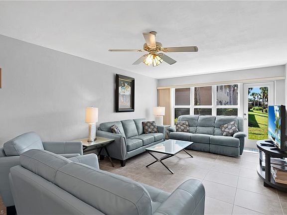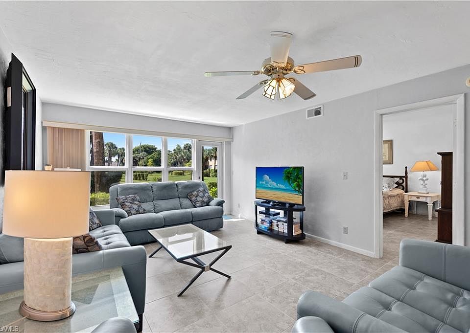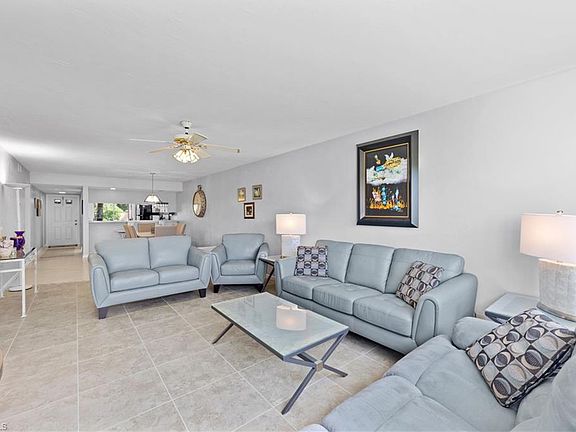 Charming 1st floor end-unit condo in the Winterpark community of Naples. 2 bedrooms and 2 full bathrooms in a split floorplan, providing privacy for all. Master BR includes a sizable walk-in closet. The home is clean, well-kept, and ready to move-in. All tile flooring. Hurricane impact glass living room windows & glass-panel back door allow plenty of natural light and added security. Pleasant green grassy views. Large interior private laundry room has spacious extra closet. New UV light in AC system. Screened front lanai can fit patio furniture. Large exterior storage closet outside the entry conveniently fits a bike, golf clubs, beach chairs, etc. The amenities are lovely, and you'll find yourself enjoying an ample-sized resort pool, clubhouse activities, tennis, & bocce. Nicely landscaped neighborhood in an excellent location within just 10-15 mins drive to the Naples Pier and exciting downtown events, shops, galleries, cafes, bars, & restaurants. Rentals are allowed, so you can easily obtain revenue with this wise investment. Bring your pet, because owners are allowed a furry friend up to 40 lbs. Low condo fees only $1100/quarter includes lawn care, pest control, cable, & water.