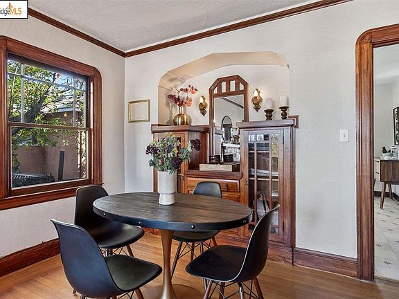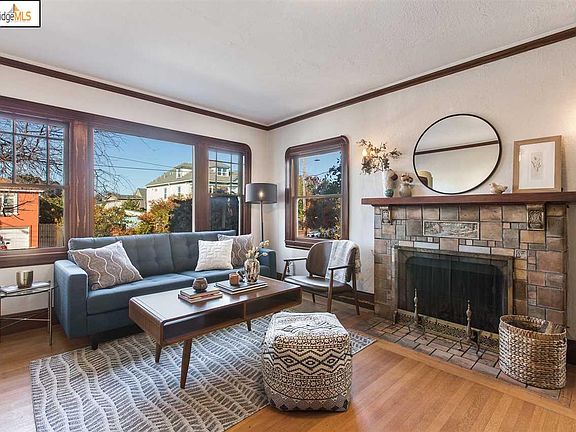 An inspiring home brimming with old-world charm. Situated above the street you'll enjoy the private tree-lined views from many of the windows. You enter through an enclosed porch that makes a great and welcoming point of arrival. The architectural details make you feel the specialness of owning a home build in this era of craftsmanship. The original detailing of sconces, rounded wood-framed doors and windows, matchstick wood flooring, gorgeous fireplace and mantle along with sweet built-ins throughout give you that pride of ownership. The spacious kitchen is open and connected to a laundry/utility room. There is a lovely connection to the back porch that overlooks the garden where the sun pours in. The home has a lot of opportunity with its generous lot, 1-car garage, and large basement area that are connected! Super convenient location; close to Temescal, Emeryville, and AC Transit and you're only a few blocks to MacArthur BART! Come grab this enchanting opportunity!