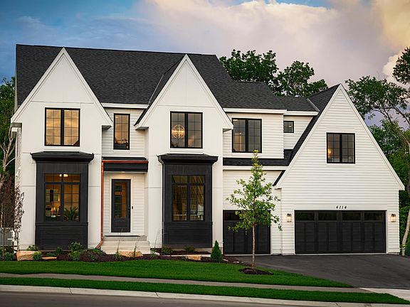 Architecturally designed modern Tudor created exclusively for Robert Thomas Homes by notable Minnesota architectural firm David Charlez DesignsExterior is detailed with LP SmartSide® prefinished siding, including wrapped windows and trim boardsFoyer features stunning box vault with smooth ceiling and wood coffersGrand open staircase to upper levelGathering room features wall of windows, fireplace, and optional built-in cabinetryKitchen features large center island with sink, and adjacent dinette and sunroomUpper level features 4 bedrooms, 3 baths, laundry and spacious bonus roomOwner's bath with double vanities, free standing tub, ceramic tile shower, and private water closet4th bedroom features en suite bathroom and large walk-in closetFinished staircase to lower level with space for future family room with optional fireplace, additional bedroom, bathroom, and storage roomOptional sport court*3 car garage with optional 4' addition*Subject to lot size*Home prices refer to starting from price and do not include optional home elevations, options, upgrades, or lot premiums. Prices, square footage, and availability are subject to change without notice. Photos, virtual/video tours, and/or illustrations may not depict actual home plan configuration. Features, materials, and finishes shown may contain options that are not included in starting from price.