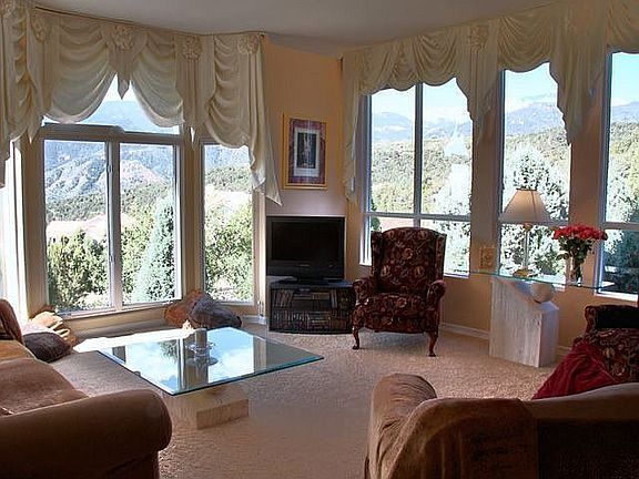 Amazing Cedar Heights home that truly offers the best of Colorado. The views of downtown Colorado Springs and Pikes Peak are prevalent from nearly every room and are some of the best in the city. On the 4th of July you can see the fireworks at Memorial Park, Fort Carson, the Broadmoor and Manitou Springs... all at the same time! Cedar Heights is an upscale gated community that offers beautiful common areas, large lots, 24-hour gated security and convenient location, close to I-25, Manitou Springs and Downtown Colorado Springs. This home was built in 1994 and features dual Master Suites, one on the main level for convenience and another on the upper level that features an attached deck. Quality materials are used throughout this home: Maple and Oak premium cabinets, granite counter top and travertine backsplash in the Kitchen, Spanish Marble in the Master Bath, and 3/4’’ thick Italian tile in the sitting room. The home also has all the modern conveniences. The Master Suite boasts a jetted tub, a double sided fireplace and a rainfall shower head. The kitchen has brand new stainless steel appliances and the house is pre-wired for an intercom. There is a steam shower in the basement bathroom. The custom touches are throughout this stunning home and provide constant elegance and comfort.