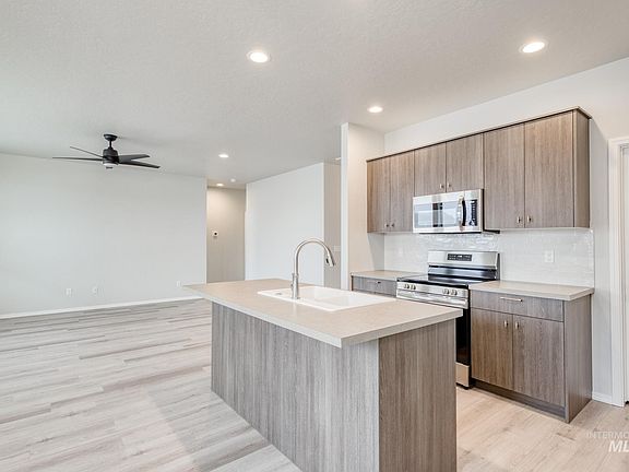 Embrace the comforts of a brand new home in Meridian, Idaho. The search for an expansive single-level 4-bedroom home ends with the Kobi 2023. The 4 spacious bedrooms are cleverly situated throughout the home to create a secluded space for everyone. The kitchen comes with stainless steel appliances and stylish solid surface countertops, adding both functionality and aesthetics to the kitchen. The primary suite is tucked at the rear corner of the home and equipped with a luxurious en suite bath and walk-in closet. With additional storage options throughout and a convenient laundry room nearby, organization is a breeze. Enjoy seamless indoor-outdoor living with easy access to the patio, perfect for entertaining or relaxing. The open layout and natural light make the Kobi ideal for both comfort and functionality. Photos are similar. All selections are subject to change without notice, please call to verify.