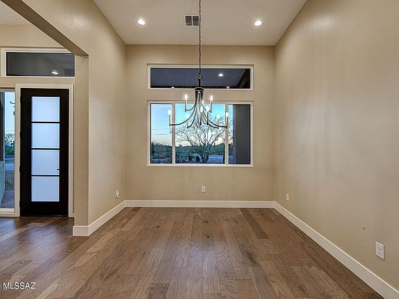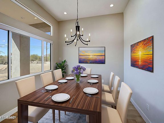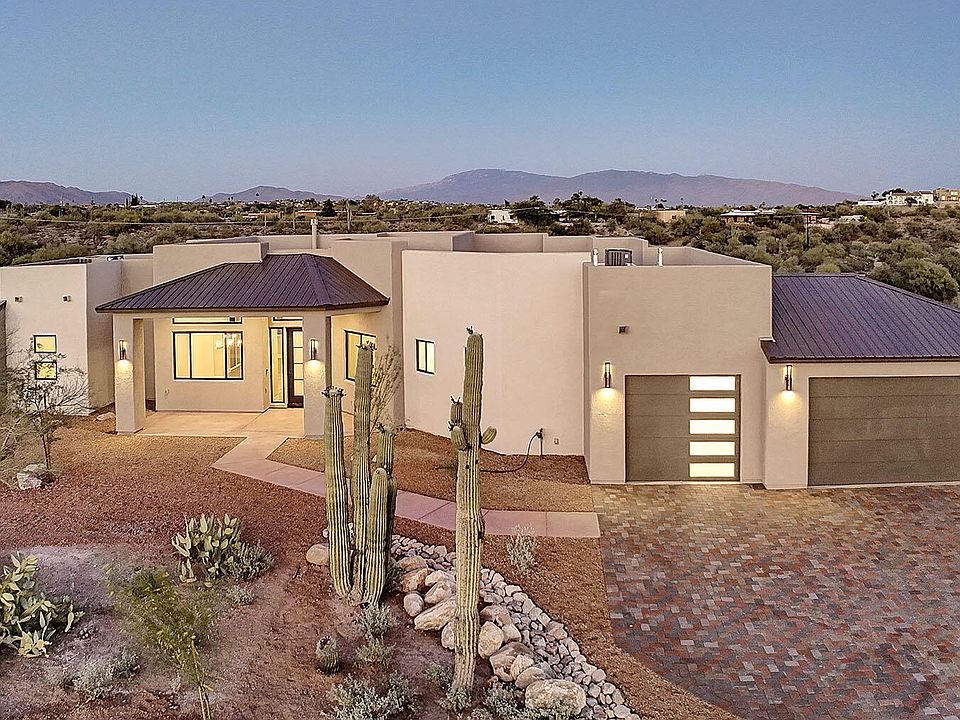 * OPEN HOUSE: 3/2 1PM to 3PM * Spacious, outstanding, new (2024) custom Southwestern Contemporary in the Catalina Foothills with 4 bedrooms, 4 1/2 baths and 3 car garage, just completed. Situated on a 1.08 acre view lot adjoining lush Valley View Wash , this 3,465 sq. ft. home is light and bright, with open living spaces including great room and separate family room. Featuring modern accents, stucco exterior, multi-hued paver driveway, steel seam and parapet roofing, marquee awnings, super-quiet energy-efficient materials, this lovely new-build is a rare foothills offering. Mature saguaro and barrel cactus, with new native desert landscape and trees leads to stylish modern steel and glass front door, into the foyer. Formal dining/sitting room, den/office with expansive windows,