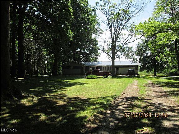 Very secluded 3 Bedroom Ranch on scenic 2.93 acres in highly desireable Saybrook Township, in northeast Ashtabula County! Close to Lake Erie! This ranch home boast of free gas heat with private natural gas well! Scenic park-like acreage! Enclosed rear patio with wood burning fireplace, pizza oven, & sink. Full unfinished heated basement! Newer Metal roof! Kitchen appliances stay! Full basement has entrance front home and garage. S smaller first level room could be used as a second bathroom. Shopping, recreation, fishing and boating, houses of worship all close by. Bring an offer! Seller very motivated!!!!!!!!!!