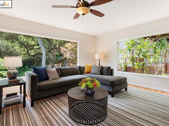 This magical, wonderful Redwood Heights home with in-law is nestled on an oak-shaded .43 acre lot with filtered hill views. Artist's studio (electrified, view), kid's playset, creekside walks, 4 level patios, planting beds. Outdoor access, light-drenched views from most rooms. Bright, airy, open floor plan, sensitively updated with hardwood floors, generous storage, 2 laundry rooms. Refreshed kitchen, baths & lighting honor original design. Updated walk-through kitchen: breakfast counter, pantry wall, stone counters, creek view over sink, s/s appliances, laundry room. Casual living room features gas insert fireplace, glass doors to huge brick patio, 3-side sylvan views. Two bedrooms with balconies, space to add ensuite baths. Complete 1-bedroom in-law downstairs (kitchen, bath + laundry), indoor & outdoor access, for blended or extended family. Your choice of convenient, close Oakland city shopping & dining districts. Minutes from Hwys 13 & 580. Near acres of parks, miles of hiking.