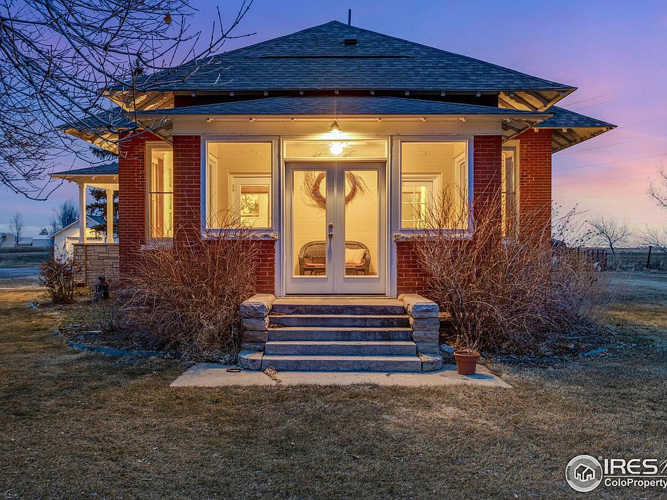 Most charming and historic small acreage property that is on the market. This home was originally Lake View School. Original blueprints, original school class photos, report cards, before and after remodel photos and survey are all available. Farm to Table in this energy efficient and completely remodeled property. Highly efficient furnace, tankless water heater, wood burning stove, Anderson windows, storm doors, exterior walls with 3 layers of brick and added insulation, primary bath with in-floor heat and instant hot water heat are some of the many energy features. 2.77 acres, FA Zoning, NO HOA, NO Metro tax, 31 X 14 Greenhouse with separate power, electric and gas meter, 4 additional storage sheds, 387 square foot detached garage, commercial grade sprinkler system, patios, fire-pit, sun-room, 13' ceilings, original hardwood floors and exposed red brick, fully upgraded kitchen with 5-burner gas range, granite slab countertops, island and pantry. Spacious primary bedroom with private 3/4 bath. Large guest bed and an executive office which can serve as a third conforming bedroom. This property is located between Loveland, Berthoud and Johnstown, so shopping, dining, entertainment and recreation are only minutes away. Come see why Loveland Colorado is frequently voted as one of the best places to live and retire in America. Call for a floor plan, detailed list of property features or to schedule a private showing.