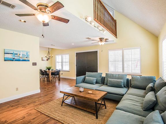 Perfect beach house only steps away from the sugar white sand! This amazing home would make the perfect rental or permanent home. Only a 1 minute walk to Beach Access 13 and you will be in Heaven. This unique home features 4 BR/2 BA including upstairs bedroom with an exquisite sitting area, large living room, dining room, kitchen with quartz counter tops, stainless steel appliances, and breakfast bar. Additionally, this home has tons of storage, 12x22 enclosed workshop/storage area, and a large car port. You'll enjoy the two balconies overlooking the back yard and front yard with a view of the gulf. The back yard is large, fully fenced, and comes with a garden house. Home is being sold turn-key with high-end furnishings.