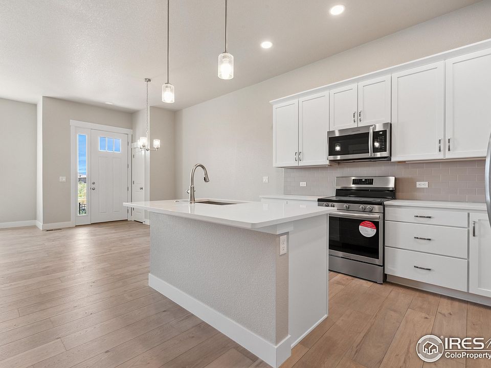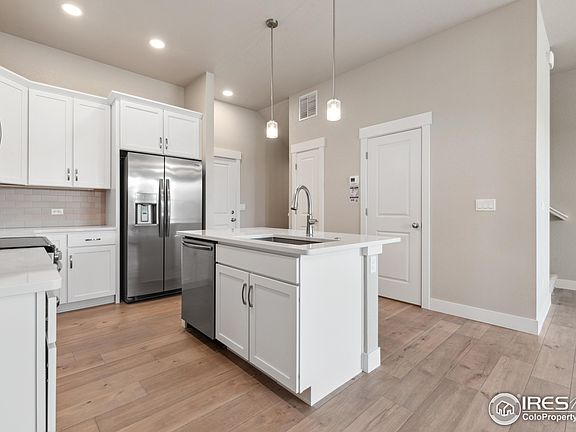 Move in ready w/ great incentives! Landmark Homes presents The Shores at the Lakes at Centerra, where quality, convenience, nature & beauty meet! The Barrington plan offers a private fenced front porch, full unfinished basement, full laundry upstairs w/ bedrooms, expansive primary bedroom, dual vanity in primary bath, walk-in closet, generous loft area & a design process you'll fall in love with! Come see the exceptional luxury interior features: high efficiency furnace, tankless water heater, & gorgeous, designer selected "Luxmark" standard finishes, quartz counters, tile surrounds, under cabinet lighting, fireplace, stainless appliances, tile floors in laundry & bathrooms & 2 car garage included. Enjoy quality craftsmanship & attainability, in a community conveniently located to shopping, banking, dining, medical facilities & nature trails. Pool, clubhouse & surface lake access included w/ Master HOA & Metro District. Schedule your private tour today! Model located at 3425 TRIANO CREEK DRIVE #101, LOVELAND, CO.