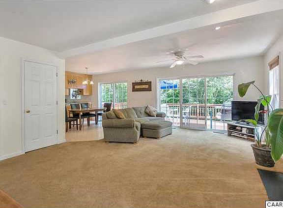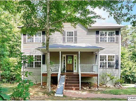 Modern home on 6 acres at end of cul de sac features huge back deck overlooking large backyard with stream running through it. Three big bedrooms with lots of light, 2.5 bathrooms. Spacious open-plan living room with fireplace. Big bonus room with closet on the ground floor could serve as a playroom, office or fourth bedroom. Two-car garage, Shed, play set, treehouse, horseshoe pit, walking trails.