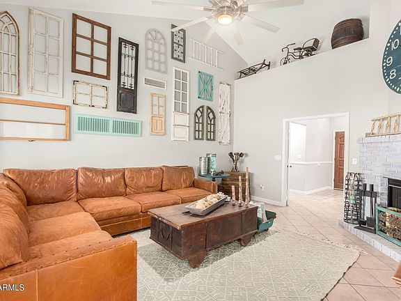 Amazing energy efficient residence is now on the market! Featuring attractive curb appeal, front paver patio, & RV gate. Come inside this beauty to find vaulted ceilings, neutral palette, carpeted bedrooms, & more. Gather around the fireplace on those chilly AZ nights. Formal dining room has double-doors leading to the kitchen. Impeccable eat-in kitchen is a cook's delight w/SS appliances, granite counters, recessed & pendant lighting, white shaker cabinets, & breakfast bar. The primary bedroom showcases a walk-in closet and private bathroom w/dual sinks & garden tub. Host fun gatherings in this impressive backyard w/covered patio, huge fire-pit, built-in BBQ w/bar, & grassy area. Look no further! Book a showing today!