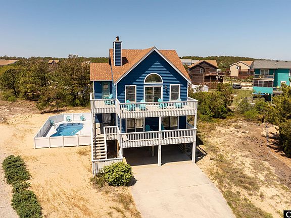 Fantastic high location in Southridge neighborhood. Neat as a pin fully furnished beach cottage with fantastic rental history. Well thought out reverse floorplan maximizes views of the Atlantic Ocean and Roanoke Sound in the distance. LVT flooring throughout for easy maintenance. Fiberglass pool, concrete pool deck and pool fencing all brand new in 2024! 2021 Improvements: Interior and exterior paint, new furniture, new decking on upper decks and stairs. This property is centrally located to everything Nags Head has to offer. Enjoy a daily walk to the sound beach access at Jockey's Ridge State Park/Soundside Road or use the convenient cross walk at Deering Street/158 to access shopping and dining between the highways.