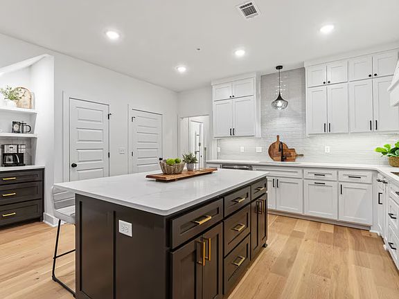 Boasting real wood flooring throughout, giving each townhome a warm and luxurious feel, while the custom cabinetry adds both functionality and sophistication. Highlights of the kitchen include the custom coffee bar and large island perfect for morning routines or entertaining guests.