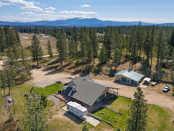 Just shy of 10 acres with a great view of the ski runs on Mt. Spokane! Lovely quiet setting for this main floor master two-story featuring over 1,200 square feet of covered deck! The kitchen has recently been refreshed and features newer appliances. Two pellet stoves will keep your furnace barely working in the winter! How about a 30x40 shop? Hot tub, gun ranges, and an RV set up so nice you may never get your RV friends to leave. Too much to list here, this floor plan offers many options. Soaring ceilings in the family room off the back of the house.