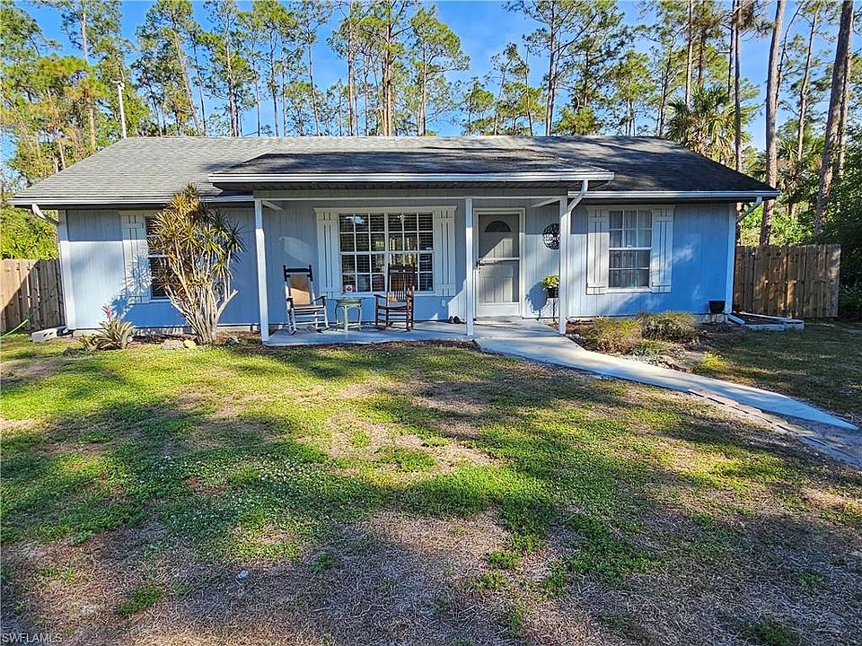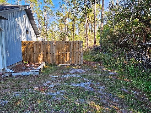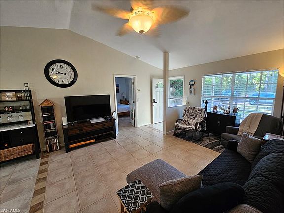 This ranch home is located in the peaceful southern section of Golden Gate Estate, situated on a very large fenced-in lot with 3 bedrooms and 2 bathrooms. It features a galley kitchen with an oversized sink, updated countertops, and a laundry closet. The property is tiled throughout. The living area has vaulted ceilings, providing a spacious open feel. The main bedroom includes a walk-in closet and recently remodel bathroom. The exterior features a cozy screened-in lanai area, a large backyard, and an outdoor shower, perfect for entertaining guests. This home is ready for to move in. The property is also available for short-term rental, a minimum lease of 6 months.