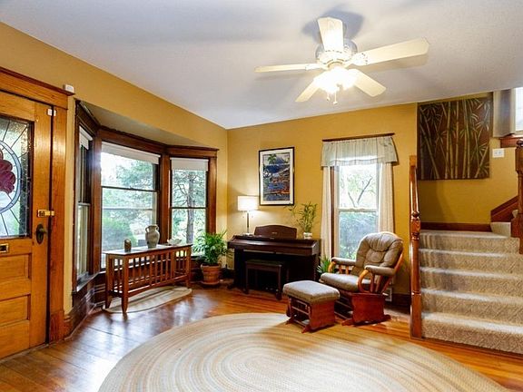Stop out to see this beautiful Victorian farmhouse with a wraparound porch in the Oak Park neighborhood of Des Moines. This home has three bedrooms, two baths, a second-floor laundry, walk in closet, hardwood floors, and a beautifully landscaped yard. The first floor features a large living room, reading room, spacious eat-in kitchen with a peninsula, formal dining room excellent for entertaining, office, and a spacious storage room. In the back, you will find a detached two-car garage, an additional parking space excellent for a boat or an RV, a potting shed, and another shed for your mower and larger tools. The north-facing, private hot-tub-ready deck freshly stained overlooks nearly an acre of wooded lot. Call if you want to see this awesome home.