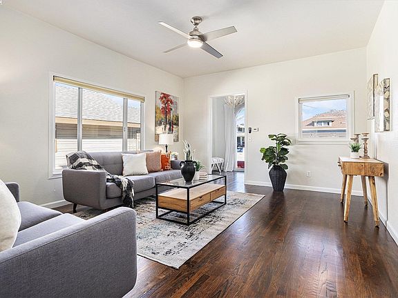 Welcome to Your Perfect Home! Nestled on a friendly cul-de-sac, this charming, light-filled gem is ready for you to move right in. Featuring a refreshed landscape, newly finished hardwood floors, and fresh paint inside and out, this home blends style and comfort. Boasting 3 bedrooms, 2 baths, and a spacious eat-in kitchen, it offers everything you need for modern living. The thoughtfully designed floor plan includes a large laundry/utility room and plenty of storage space. Looking for extra room? The finished attic, with convenient stair access, provides a versatile bonus space ideal for a home office, studio, playroom, or whatever fits your lifestyle. Step outside to a generously sized, fenced backyard—a private oasis with a custom-built back porch, secluded patio, storage shed/workshop, raised garden beds, and room to relax or entertain. The oversized yard even offers potential for future expansion or an ADU (Accessory Dwelling Unit). Located in a walkable and welcoming neighborhood, neighbors here work together to make parking and living easy. With quick access to BART, major freeways (880 & 580), schools, and shopping, this home truly offers the perfect balance of community and convenience.