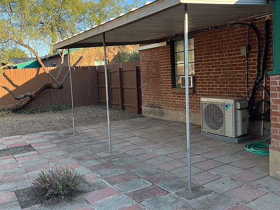 Two bedrooms, one bath in duplex. 775 square feet. Refrigerator and gas stove, mini split AC/heat pump in living room and SE bedroom. SmallAC unit in second bedroom. Washer and dryer in utility room. Tenant pays electric and gas, owner pays water and trash collection. Pets negotiable with non-refundable deposit. All tile floors and mini blinds & vertical blinds window coverings. Large fenced back yard and covered patio, off street parking for two vehicles. Please fill out application on Zillow. Landlord pays water and trash collection. Lease term twelve months.
