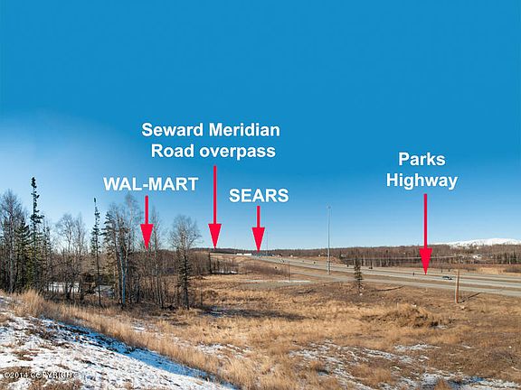 5.1 acre lot with terrific access and outstanding visibility from the Parks Highway. SFR on property with month-to-month tenant.
