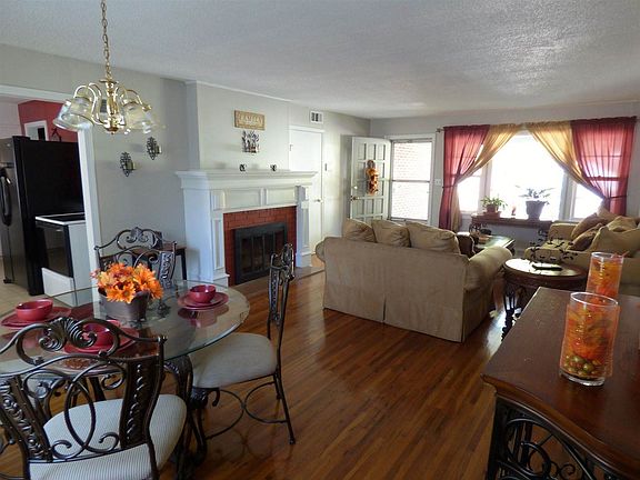 Welcome to your NEXT HOME! This well-kept 3 bedroom, 2 bath, brick home is located on a corner lot. It has a 1 car attached garage and a 1 car detached garage. The beautiful, open livingroom and diningroom is spacious with hard wood floors and freshly painted walls. It has a decorative fireplace that is electric and also wood burning. All bedrooms are good sizes and have plenty of storage and hard wood floors. Kitchen has a breakfast nook with a built in eating booth. Enjoy the separate laundry room and additional bathroom that is easily accessible to the huge family room located on the other side of the kitchen. 2nd fireplace is wood burning. Plenty of natural light enters in and leads out to the covered patio and fenced backyard. The detached garage has entry from the side street.