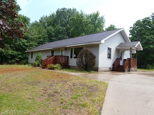 Come to the Country to see this well maintained 4 bedroom 1.5 bath home. Sitting on 10 acres and in Fruitport School District makes it that much more appealing. The bedrooms are all nice sized. The extra large kitchen has beautiful cabinets and lots of them; giving you maximum storage space! The adjacent dining area has sliders to the deck overlooking the wooded back yard. You will not want for storage as there is a storage shed and a large pole barn to hold all of your toys and then some. You have to see this one before it's gone. This is a Fannie Mae property and qualifies for Home Path and Home Path Renovation Financing. Purchase this home for as little as 3% down. Contact Agent for details. Buyer to verify all taxes, assessments, zoning, measurements and homestead status. Buyer to pay $150.00 rekey fee at closing. Brokered And Advertised By: The Platinum Realty Group Musk Listing Agent: Robert J Rands