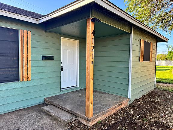 Fully Remodeled 2 Bed, 1 Bath Duplex Quiet & Central in Wichita Falls! Discover modern comfort at 4121 Faith Road Unit B, a beautifully remodeled 2 bedroom, 1 bathroom duplex in the heart of Wichita Falls. Nestled on a peaceful, quiet road, this home offers the perfect balance of tranquility and convenience, with easy access to everything Wichita Falls has to offershopping, dining, schools, and entertainment are just minutes away. Step inside to a bright, open layout featuring brand-new luxury vinyl plank flooring in the bedrooms and living areas, paired with sleek marble-look tile in the kitchen and bathroom. Freshly painted neutral walls create a welcoming atmosphere, ready for your personal touch. The modern kitchen boasts white cabinetry, stunning marble-like countertops, a matching backsplash, and comes equipped with a white refrigerator and stove. There is a new black stainless sink, and new modern hardware throughout. A large window with blinds fills the space with natural light, and the adjacent dining area provides easy outdoor access through a side door. Both bedrooms are spacious, offering large windows with blinds, generous closet storage with double doors, and ceiling fans with integrated lighting for year-round comfort. The fully renovated bathroom features a sleek tub/shower combo with a handheld showerhead, stylish wainscoting, built-in shelves, and modern black fixtures. Stay comfortable in any season with the central heating and cooling systema rare and valuable feature. Outside, enjoy a covered front porch and a giant owner-maintained yard, perfect for relaxation. The duplex's charming green siding and wooden shutters add curb appeal, while the quiet neighborhood ensures a serene living experience. Pets are welcome on a case-by-case basis with a $250 fee per pet, making this home ideal for everyone! Don't miss this opportunity to live in a fully updated duplex on a quiet road, yet central to all that Wichita Falls has to offer. Call us for more info today! Application required for anyone 18 years or older.