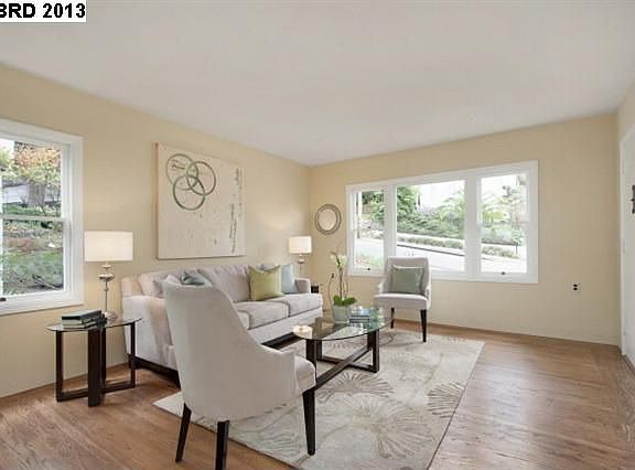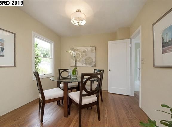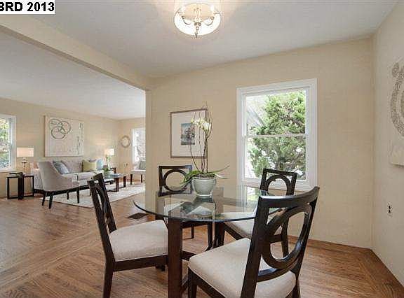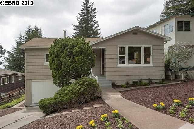 Bright, cheerful home ideal to spend summer and years to come! Large back yard, lots of sun. Refinished hardwood floors, new tile counter, large bath with tub and separate shower. Lots of natural lite, formal dining room, designer colors, and Bay views. Lower level with high ceiling, great potential. Level lot, Redwood Heights /Upper Laurel hillside location.
