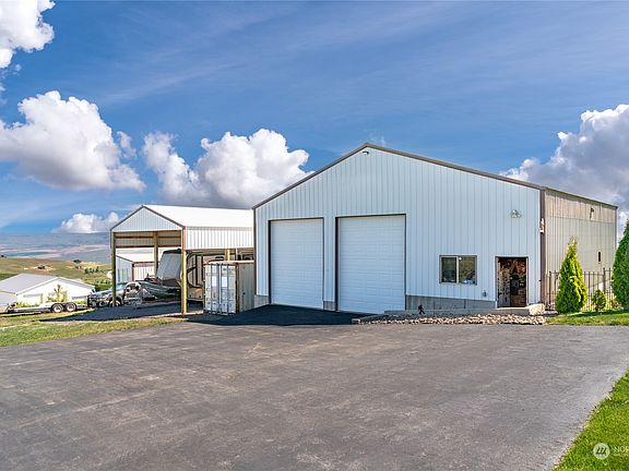 360 DEGREE VIEWS, PRIVACY AND STORAGE GALORE! Beautiful brick rambler with cathedral ceilings, many recent updates, large deck & tile roof. 40x40 insulated and heated shop with 3/4 bath and metal roof, office space and work area, plus 24x40 RV carport, 2 car carport and 2 machine sheds. 50A full RV hookup. 4.97 irrigated acres with an insulated and heated studio, outdoor entertaining oasis with hot tub, fenced above-ground solar heated pool, in-ground firepit, gazebos and fish ponds. Two raised bed garden areas with drip lines, chicken coop, fruit trees, Christmas trees & more. Second septic installed and permitted so you can build a 2 bedroom ADU. Professional landscaping and fully-fenced acreage for pets.