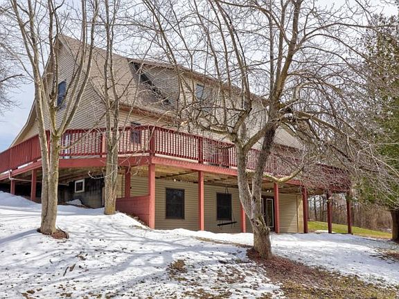 Welcome to this serene getaway at 4121 Kingston Rd, a private oasis nestled in Kingston, MI. This charming residence boasts an expansive 2,200 sqft of meticulously crafted living space with 5 bedrooms and 3 bathrooms, making it an ideal haven for comfort and tranquility. Delight in the warmth of hickory wood floors underfoot in the inviting living room and the convenience of a first-floor laundry. The heart of this home features a master suite complete with a luxurious jetted tub, perfect for unwinding after long days. For those who love to entertain or simply enjoy quiet evenings, the wrap-around deck and covered front porch offer peaceful outdoor retreats, overlooking the picturesque pond and lush surroundings. The property also includes a walk-out, semi-finished basement with plumbing ready for a 4 bathroom and just needs your final touches, and a spacious pole barn. Whether you're seeking solitude or space to entertain, this exceptional home, in its private and secluded locale, promises a lifestyle filled with relaxation, wildlife, and outdoor enjoyment. Welcome to your dream home at 4121 Kingston Rd.