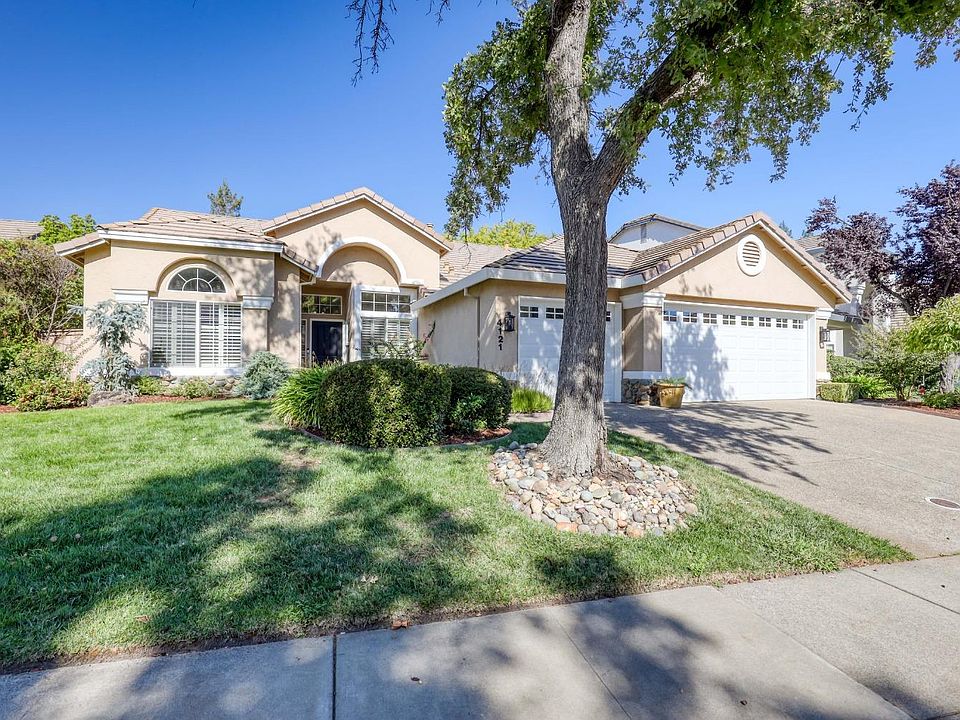 Gorgeous Granite Bay single-story home in highly-desirable Eastridge neighborhood. Roseville utilities with Granite Bay schools! Beautifully upgraded 4-bedroom home with great room, wood floors, 10-foot ceilings with crown molding, custom plantation shutters, gas fireplace, and fresh paint. Separate living room and dining room. Kitchen includes quartz countertops, designer tile backsplash, double ovens, 5-burner Bosch gas cooktop, pantry, and island with seating. Large primary suite with double sinks, jetted soaking tub, shower, and walk in closet. Three additional bedrooms have extra storage space above each closet. The tranquil professionally landscaped backyard offers a walking path and a large patio with pergola. Three-car garage has custom cabinets and overhead racks. Eastridge residents enjoy wider streets, a private playground, and access to paved walking paths through wetlands. The HOA maintains all front yard landscaping. Eureka Union School District K-8 and Granite Bay High.