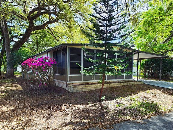 ***Please call LISTING AGENT, Sharon McCollum, DIRECTLY for more information or to schedule a viewing.*** This great deal is located in the age qualified community of Clover Leaf Farms. The first thing you will love is plenty of parking with a deep carport. This 2 bedroom, 2 bath home sits on a shaded lot in the center of the park. The HVAC was new in 2017 and the roof is metal. There is a sunroom on front with vinyl windows for year-round enjoyment. Main bedroom has brand new carpet. If you are looking for a bargain home that you can make your own - this is one to see! Priced to move - call today! **Located north of the Tampa/Clearwater/St. Petersburg metro area, Clover Leaf Farms is a 55+ retirement mobile home community that is big on amenities. Offering two spacious clubhouses, billiards, shuffleboard courts, pickle ball and catch/release fishing you won't be bored here. There is also a dry sauna, indoor heated swimming pool, and a whirlpool-spa-hot tub as well as a large heated outdoor pool and new fitness center, library and billiard room. This Brooksville, FL mobile home neighborhood will never leave you wanting. Clover Leaf Farms also provides its residents with a pet friendly environment that includes RV storage, a scenic picnic area, and on-site management. Monthly fee is $753 and includes water, sewer, trash pick up 2x per week and lawncare.