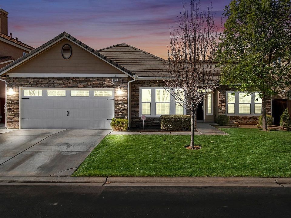 Welcome to the stunning Quail Lake community, in the exclusive Creekside neighborhood. Upon entering you are welcomed to an expansive open layout. There is a nice bonus room, which is being used for Zoom school and a playroom... but there are so many other options for this spacious room, conveniently located at the entrance of the home. The large living room boasts soaring vaulted ceilings, and there's plenty of room for relaxing and entertaining. The chef's kitchen is the heart of this home, with lovely granite counter tops, stainless steel appliances, a large pantry, and a gas cooktop. The owner's bedroom welcomes in natural light, and the owner's bathroom has two sinks, soaking tub, and a large walk-in shower. This home features an indoor laundry room, and the 4th bedroom has its own bathroom perfect for someone needing their own space. The enormous backyard is perfect for entertaining, relaxing under the covered patio and there's a nice dog run on the side of the house. Across the street is an orange orchard and picturesque perfect view of the mountains. This is a home you must see in person to appreciate!