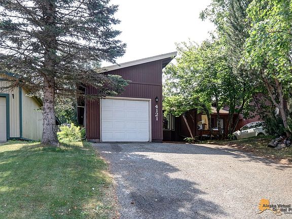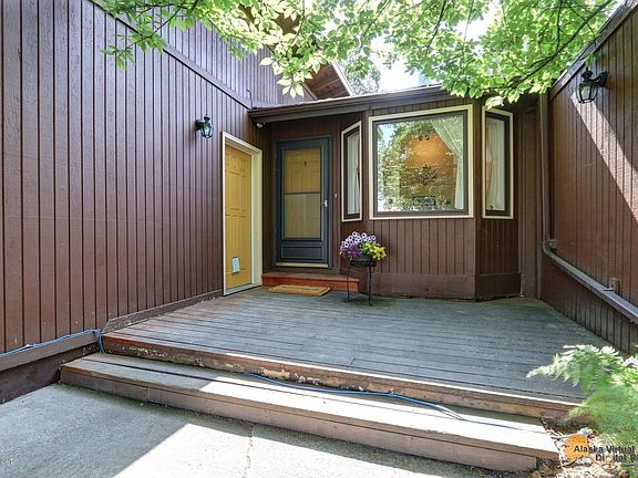 Ranch style floor plan home has a fireplace centered between the living and dining room, vaulted ceiling in both the living and dining room plus a sky light to add to the open bright home, laminate flooring thru out main living area, Fenced back yard with large covered deck. Near the Chugach Foothills Park and Tikhatnu shopping, Kaladis, JBER, and easy UMED / Midtown access!