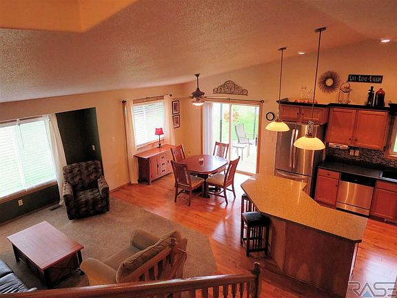 Wow - beautiful 4 bedroom, 2 bath Multi-level built in 2000! One owner home. Updated kitchen with island (granite transformation), backsplash, updated fixtures, and stainless steel appliances. Gorgeous oak floors in the kitchen and dining room. Dining room has slider to the deck (that has brand new deck boards). Kitchen, dining room, and living room are open floor plan and have vaulted ceilings! Bright & cheery family room with gas fireplace. New carpet on the main and upper levels in April 2018. Nice Master bedroom with a spacious walk-in closet. Other three bedrooms are spacious and have double closets. Tile floors in the both full bathrooms. Upper level bath has double sinks. New high efficiency furnace in August 2018. Fresh exterior paint in 2015. Brick accents added to the garage in 2015. Finished double attached garage with opener & keypad. Wonderful professionally landscaped yard with sprinkler system. Fantastic, sought after neighborhood in southeast Sioux Falls.