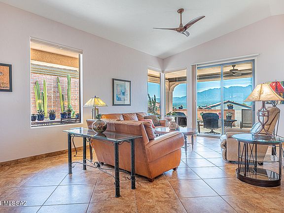 This HOME is truly just beautiful inside and outside. Nicely maintained and upgrade with one of the most stunning courtyard and backyards in Green Valley. Add the exceptional view and this home is a winner in many ways. 2 bedrms, 2.5 baths, den, office and an over sized garage. Some of the super high points are: HVAC install 6/22, Roof 2023, water heater , water softener , Steam shower and linen closet in the main bath room, sunscreens, roll down shades on the front and back patio, ceiling fans, solar tube in den, utility tub and storage cabinets in the garage TRULY STUNNING LANDSCAPE AND TERRIFIC VIEWS.