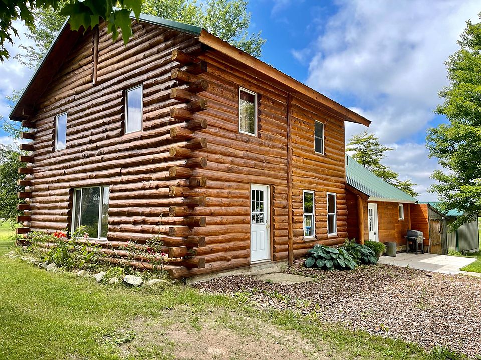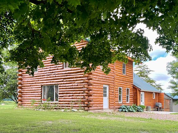 WELCOME HOME to this COUNTRY HAVEN! Just what you've been waiting for; This VAST property offers you a country LOG farmhouse with a Package of outbuildings. This 5 Beds/1 Full Bath: NEWLY updated Farm house sits on 8 acres: Nestled in another 72 acres w/potential to purchase in combination. Spacious kitchen with NEW HICKORY Handcrafted Cabinets. In the home, you will be welcomed by NEW floors and custom Designs throughout. Tin Ceilings, Real wood accents and so much more. The main floor offers true country living style and plenty of room for a farmhouse table the whole family can enjoy, open concept kitchen, and a spacious pantry space. Open designLiving rm, Main floor BR, with separate main Level Laundry area. Upper level offers 4 Beds with lots of storage. (MORE) WELCOME HOME to this COUNTRY HAVEN! Just what you've been waiting for; This VAST property offers you a country LOG farmhouse with a Package of outbuildings. This 5 Beds/1 Full Bath: NEWLY updated Farm house sits on 8 acres: Nestled in another 72 acres w/potential to purchase in combination. Spacious kitchen with NEW HICKORY Handcrafted Cabinets. In the home, you will be welcomed by NEW floors and custom Designs throughout. Tin Ceilings, Real wood accents and so much more. The main floor offers true country living style and plenty of room for a farmhouse table the whole family can enjoy, open concept kitchen, and a spacious pantry space. Open designLiving rm, Main floor BR, with separate main Level Laundry area. Upper level offers 4 Beds with lots of storage. Home does need additional updates and final touches. New Water heater 2022, New Base board electric Heat w/supplementary wood heat, Artesian well 64x 40 pole barn with added 60x36 additional storage Barn area with concrete floors, along with additional Pole Building 45 x 36 that has 3 rooms, heat/ electric and another 40 x 22 Barn. Newer Metal Roof AND MAIN LEVEL FLOORS ALL WITH RADIANT HEAT(2022).Outdoors is peaceful with Yard Area galore, Gardens and full tillable farmland with a private pond. HORSES? This property would be a lovely retreat for any equestrian.