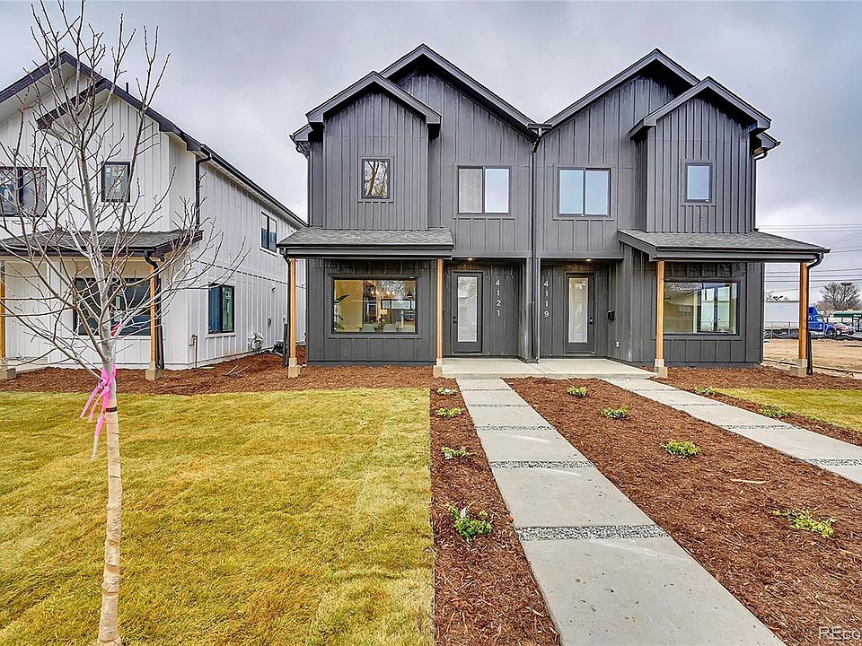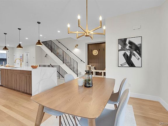 Stunning contemporary NEW construction 1/2 duplex (South unit) just completed in super hot South Broadway. Luxury kitchen w/contemporary cabinetry, huge 11' eat-in island with stunning movement in the quartz countertops, closet style pantry, undercabinet & under-island lights & Kitchen Aid appliances. Upgraded contemporary handrail opens the floor plan. Solid white oak hardwoods on main floor. Custom seating area for storage & coats just inside the front door. Beautifully upgraded main floor half bath with custom woodwork and stylish black accents. 2 bedrooms upstairs w/vaulted ceilings. Primary bedroom has massive beautifully lit walk-in closet. Ensuite primary bath w/ huge walk-in shower, floor-to-ceiling custom tile & more. Contemporary black Anderson windows. Detached 2 car garage w/ wifi/smart opener, insulated garage door & wiring for electric vehicle charger. 2 bedrooms w/ vaulted ceilings. Full basement unfinished basement for storage and designed for 1 bedroom and full bathroom. Various rooms prewired for TV locations. No HOA. Party wall agreement in place. Buyer to verify taxes as they have not yet been assessed.