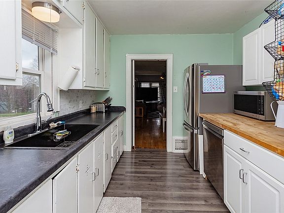 Welcome to this updated 3 bedroom, 1 bath home on a large corner lot. This ranch features an open concept with hardwood floors, newer windows, vinyl siding and brand-new roof with a 50 yr warranty. The kitchen has newer appliances and plenty of storage space. The basement has a laundry room, tuck under one car garage and a space to be potentially finished for a second living space. This property also features a large detached 2 car garage with room for plenty of storage or workshop just built in 2020. The yard is partially fenced in and could be fully fenced in easily. Schedule a showing today! All information obtained from Seller and public records.