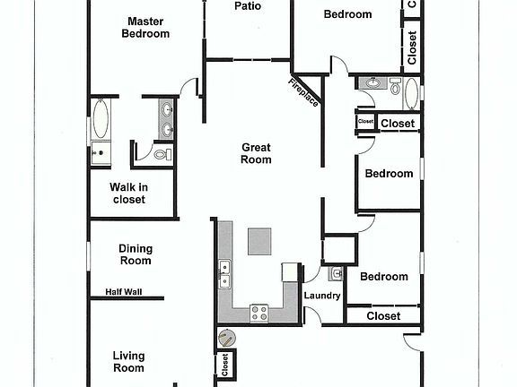 Westside 4 bedroom single story with a three car garage and over 2200sqft. This spacious floorplan has a living room, dining room, and a great room with a fireplace. Granite counters with stainless steel appliances in the kitchen. Tile flooring throughout the common areas. Built in patio leading to a large back yard with block walls. The master bath has his and hers sink with a walk in closet and separate tub and shower.