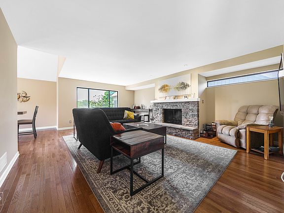 Updated 2 story home with finished walkout basement. Over 2800 Square feet of finished living space. Rare 1st floor master suite with bamboo flooring, volume ceiling and private bath. Eat-in kitchen features hardwood floor, stainless appliances & granite counters. Warm up next to the custom stone fireplace in the family room which also features hardwood flooring. Separate dining room with hardwood floor and sliders leading to the newer deck overlooking the landscaped common area. 2 oversized bedrooms and a sun filled loft complete the 2nd level. Spread out in the huge walkout basement with bar, sliders leading to a backyard patio and plenty of storage space. The custom wrap around deck is a perfect spot to relax in the private built in hot tub. Enjoy a single family home while living maintenance free. Newer furnace, ac, deck, hot tub. 7 minutes to Metra station and downtown Crystal Lake.