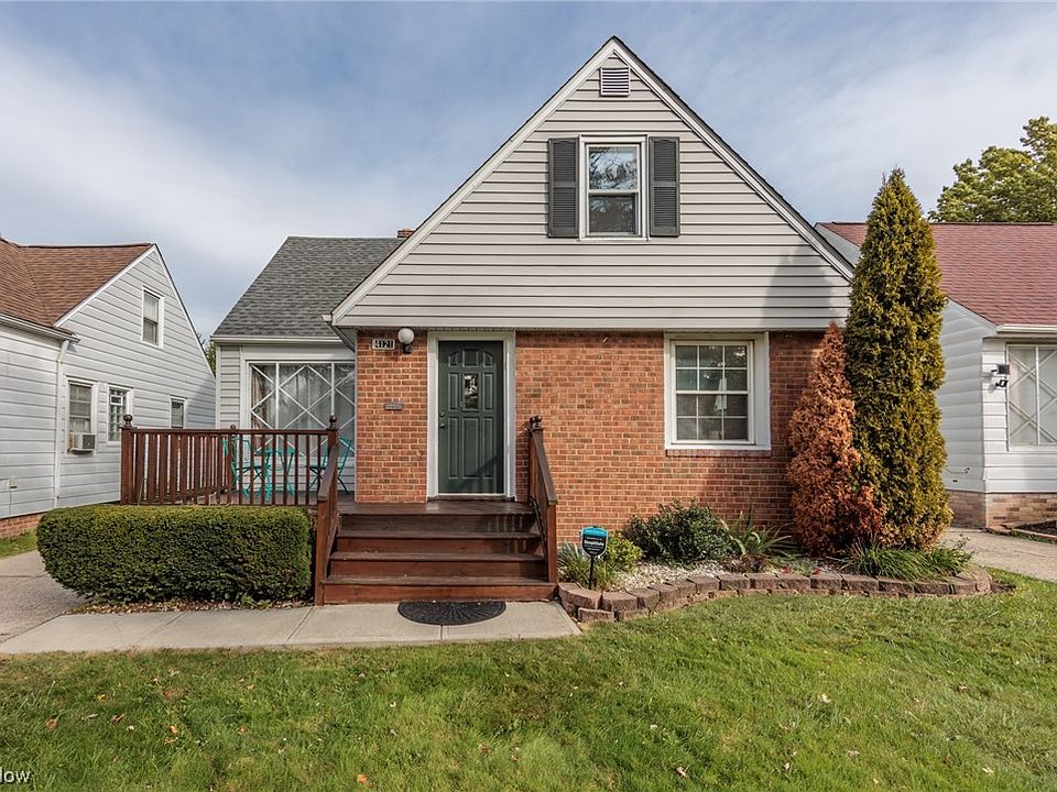 This well-maintained Cape Cod home features beautiful hardwood floors, vaulted ceilings in the kitchen and mudroom, oversized windows, an updated bathroom and two main-floor bedrooms. Relax in the privacy of a comfortable second floor suite, complete with its own full bathroom. The updated kitchen boasts vaulted ceilings, a trendy tile backsplash, stainless steel appliances and plenty of cabinet/counter space, all brightened by the beautiful bay windows and a dramatic skylight. Upgrades to new energy efficient lighting can be found throughout the home. Get nostalgic with a laundry chute discreetly located in the main floor linen closet. Outside you'll find a generously-sized back porch overlooking the fenced in yard in addition to a seating area on the back patio, a single car garage, and a front porch. There is also additional gathering space in the partially finished basement. Situated on a residential street, 4121 Wyncote Road offers easy access to the vibrant shops and restaurants on Warrensville Center Road. Additionally, it provides a convenient commute to the nearby hospital systems, universities and cultural institutions of University Circle. This home truly combines classic charm with modern comfort, making it an ideal place to call your own.