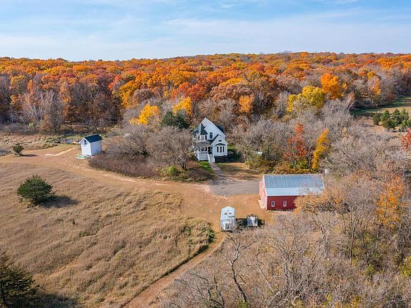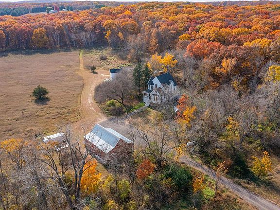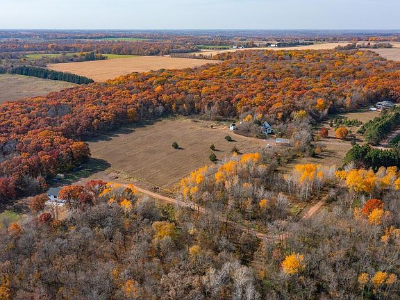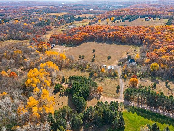This 1994 custom built 2-Story Home is nestled on a nearly 20-acre lot, complete with a quiet meadow, heavily wooded area, and basic hobby farm essentials that include a fenced garden area, a chicken coop, and outbuildings. Inside the Home features old farmhouse character with its wide-plank hardwood floors, paneled doors, wide trim work, beautiful transom windows, and custom built-in cabinets and ornate columns – all salvaged and beautifully placed thru-out! The attractive gourmet Kitchen features a large picture window, butcher block countertops, farmhouse sink, ZLINE 6-burner gas range, XL refrigerator/freezer, separate ice maker, and nearby walk-in Pantry. The Kitchen opens to the inviting Dining area with its bay window view, pretty chandelier, and cozy wood stove for those festive holiday gatherings! The generous Living Room has recessed lighting, tall windows, and custom built-ins flanking the bay window. A ¾ Bath with a corner shower finishes the main level. 5 Bedrooms with 3 Bedrooms on one level, including the spacious Primary Suite and private Full Bath with dual sink vanity, large soaking tub, and separate shower. Walkout lower-level features 2 more Bedrooms, a Family Room area with a kitchenette, and a ¾ Bath – ideal for guests or multigenerational living. Greeting your guests while sipping fresh lemonade from a rocking chair on the traditional Front Porch will bring the vibe of the 70's TV classic, The Waltons! You’ll appreciate dining and relaxing with your guests on the huge Rear Porch, equipped with a sink for cleaning up after a long day of chores outside! Property includes a detached 4-car Garage, a couple of outbuildings – one for storage and one that could be a charming playhouse with loft or garden shed! Whether you're looking to start a hobby farm or simply enjoy peaceful country living with modern comforts, this home is a rare find. Located just 6 blocks from Wild River State Park on the St. Croix River.